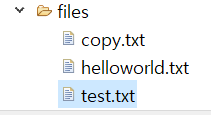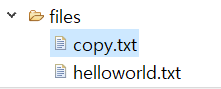 "files/copy.txt" 파일은 존재하지 않기 때문에 "files/copy.txt" 파일이 새로 생성되었고, 기존 "files/helloworld.txt"의 내용을 읽어와 "files/copy.txt"파일에 썼기 때문에 동일한 내용의 파일이 생성되었습니다.