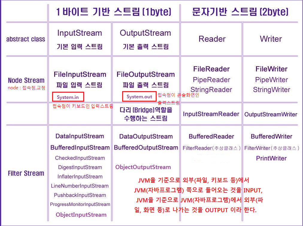 InputStreamReader와 OutputStreamReader 클래스는 byte 단위의 데이터 입출력 클래스인 InputStream과 OutputStream을 char 단위의 입출력 클래스인 Reader와 Writer로 변환하는 클래스입니다.