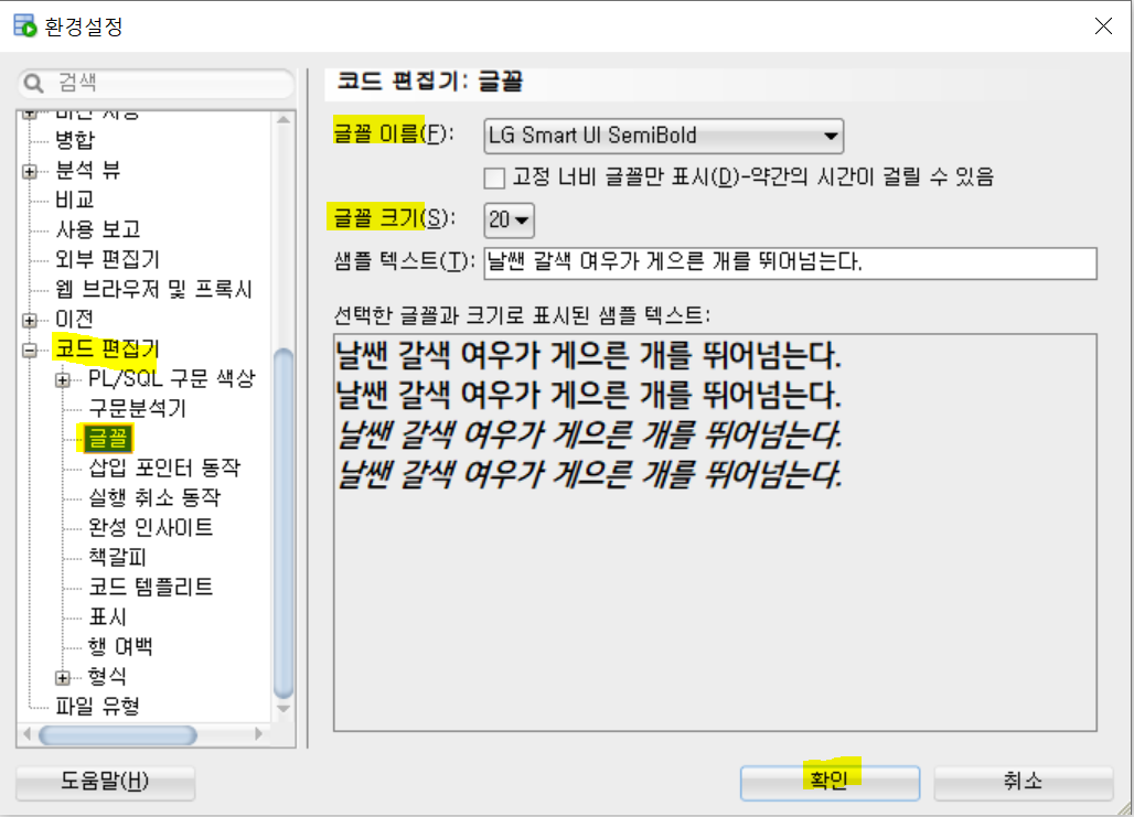 코드 편집기 - 글꼴
