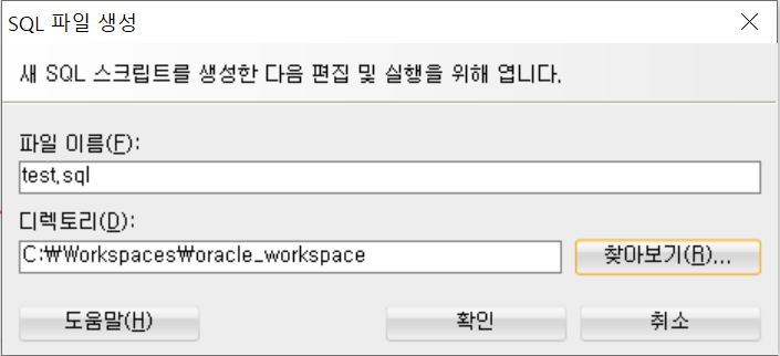 저는 Workspaces 하위에 oracle_workspace 폴더를 만들어서 관리하기 때문에 디렉토리를 다시 설정해주었습니다.