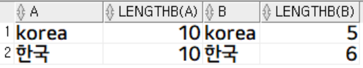 lengthb(a), -- 길이에 관련된 column 생성(lengthb())