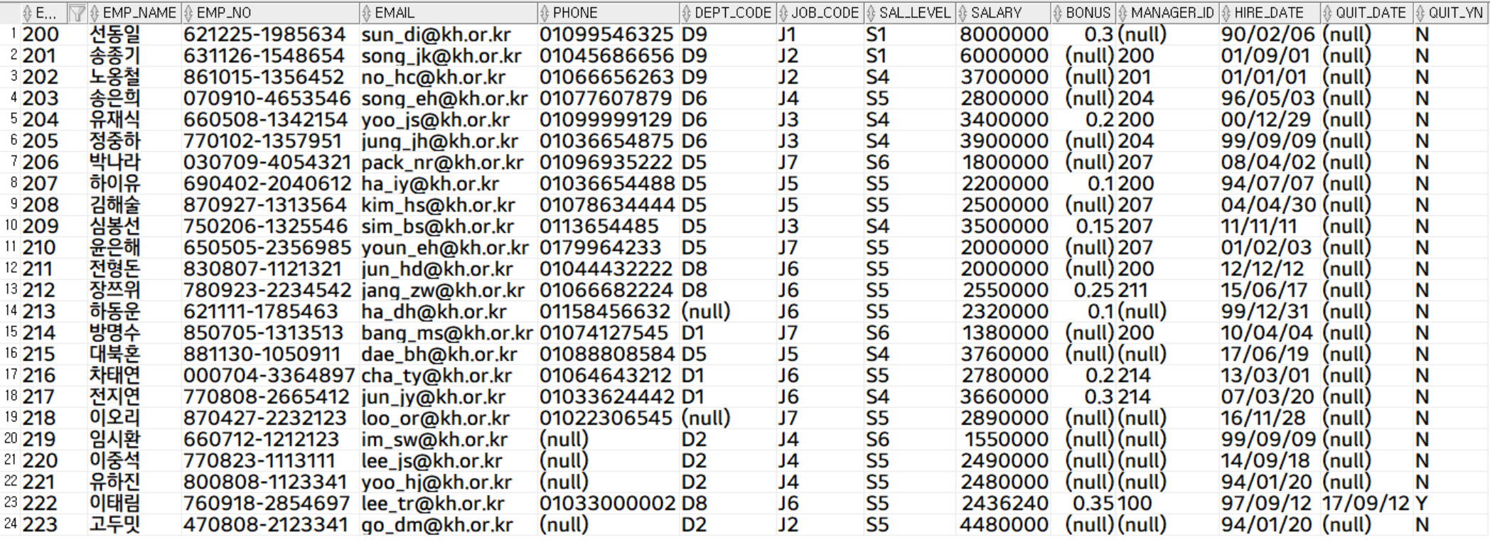 employee 테이블에 대한 데이터를 조회한 결과이므로, 이것이 바로 '결과집합'입니다.