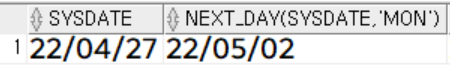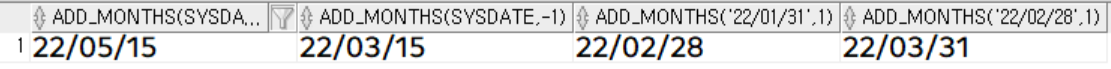 add_months('22/01/31', 1), -- 한 달 뒤의 말일을 반환