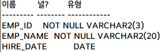 d date default sysdate not null -- 기본값을 sysdate, 필수 입력해야되는 컬럼 지정