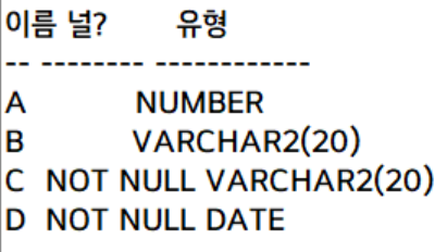 c varchar2(20) not null, -- 필수 입력해야되는 컬럼