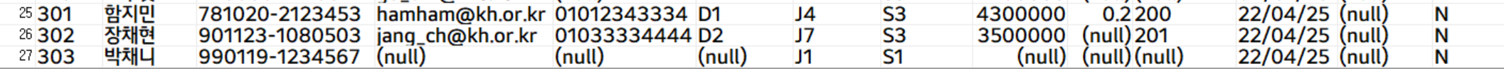 '301', '함지민', '781020-2123453', 'hamham@kh.or.kr', '01012343334', 'D1',