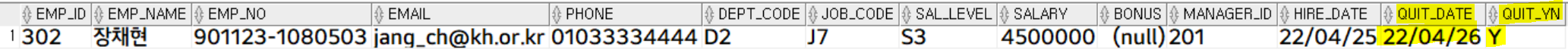 ① 소규모 데이터의 경우, 삭제 컬럼으로 처리'302' 사번을 가진 사원 퇴사 처리