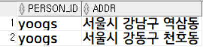 따라서 'yoogs'에 대한 데이터는 addr이 달라도 유일해야 한다는 것을 확인할 수 있습니다.