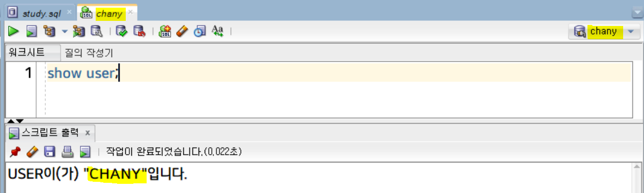 -- 일반 사용자 (12c부터) c##chany, C##CHANY처럼 생성해야 하지만, 번거로우므로 아래 코드 실행