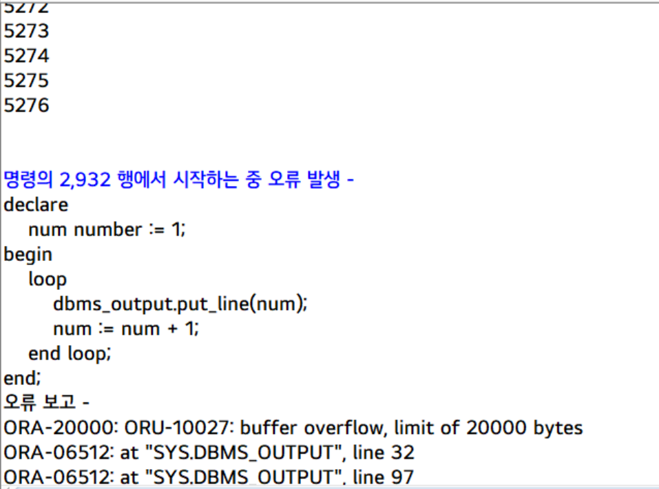 -- ORA-20000: ORU-10027: buffer overflow, limit of 20000 bytes 탈출조건 명시!!
