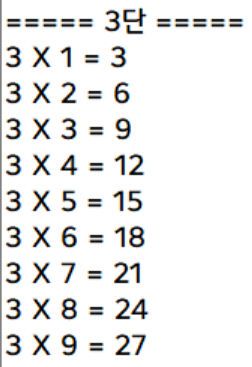 dbms_output.put_line('===== ' || dan || '단 =====');