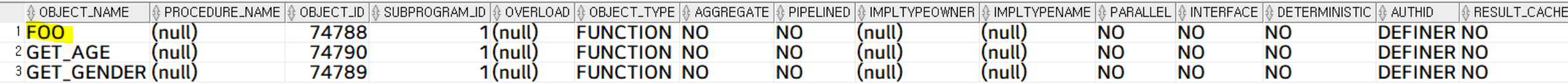 select * from user_procedures where object_type = 'FUNCTION';