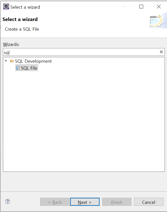 File name을 입력해주고 Finish 클릭! (저는 student.sql로 하였습니다.)
