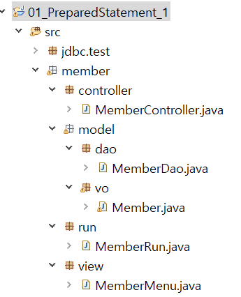 MVC pattern에 따라 패키지 및 클래스들을 생성하였습니다.