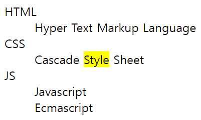 <dd>Cascade <mark>Style</mark> Sheet</dd>