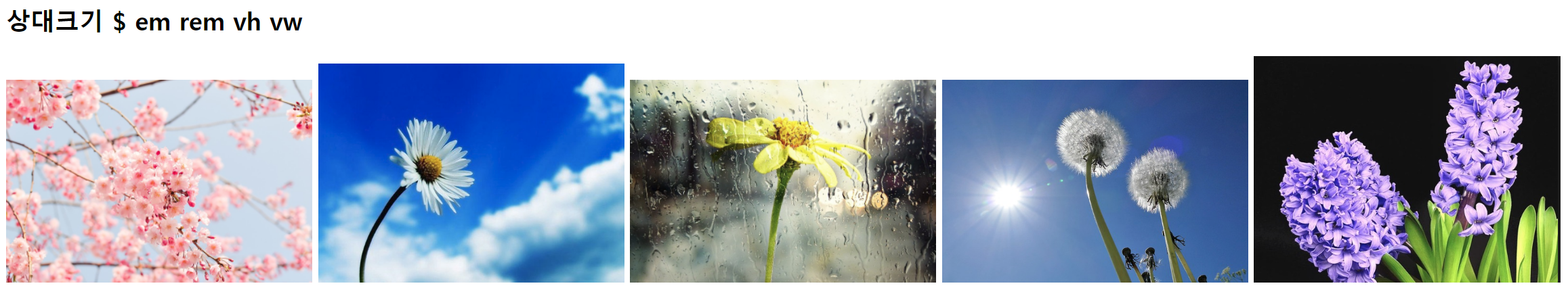 <h2>상대크기 $ em rem vh vw</h2>