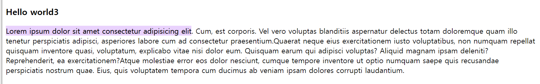 Hello world3의 첫 번째 문장을 드래그 + 오른쪽 마우스 → 하이라이트 링크 복사를 하여 해당 문장의 링크를 복사한 후 링크하였습니다.