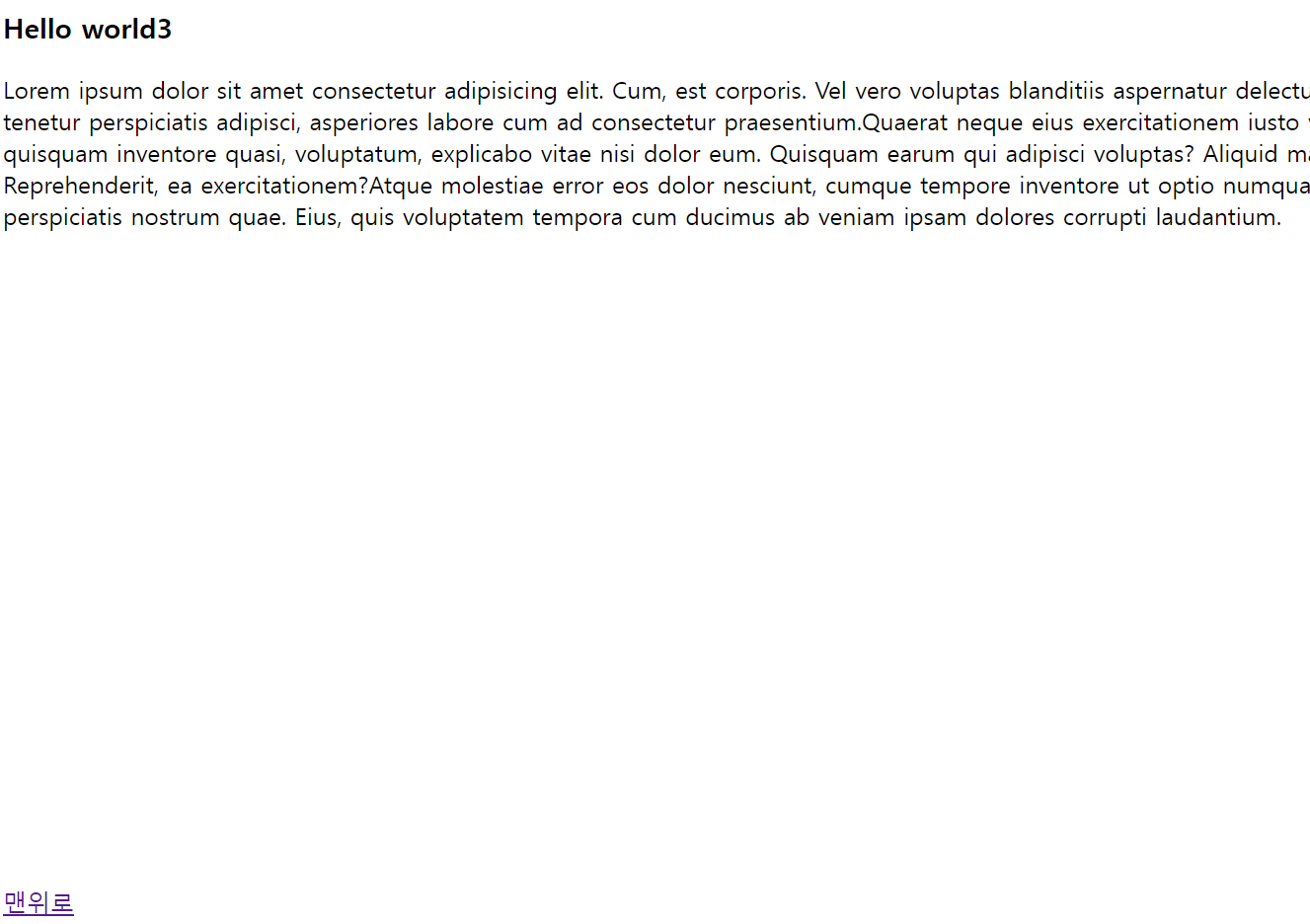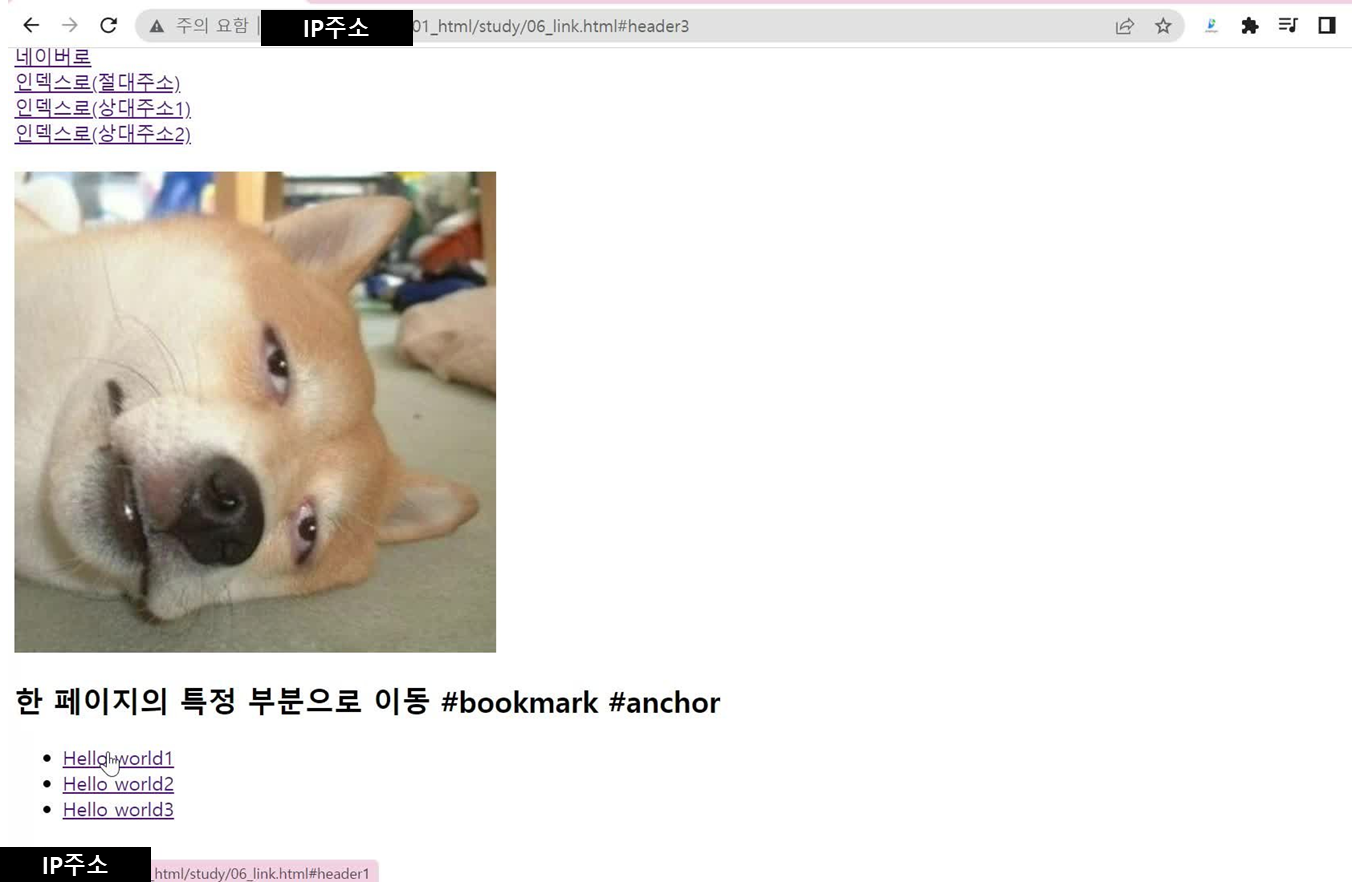 Hello world3를 누르면 Hello world3로 이동 (header3)하는 것을 확인할 수 있고, id값을 가지고 찾아가는 것을 기억!!