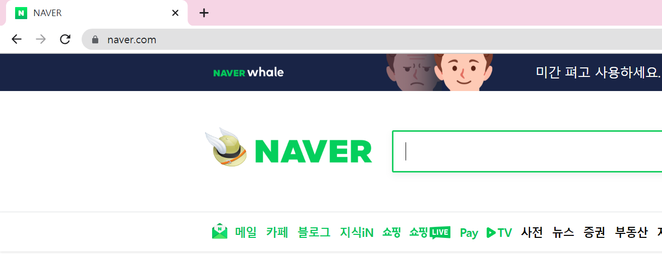 해당 탭에서 naver가 열림 (target 지정하지 않았으므로 _self가 기본값 적용)