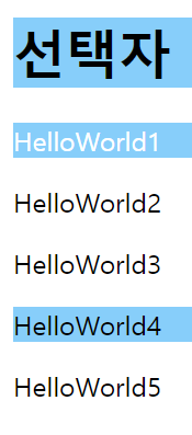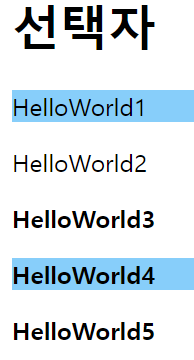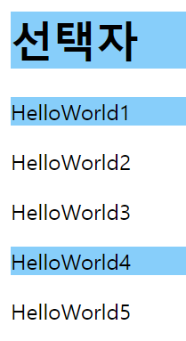또한 선택자 ~ 선택자는 이전 요소는 선택할 수 없으며, 이는 추후 자바스크립트로 보완 가능합니다.