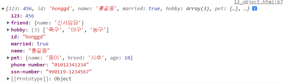 // 'phone number', 'ssn-number', 123은 dot nataion으로는 불러올 수 없음
