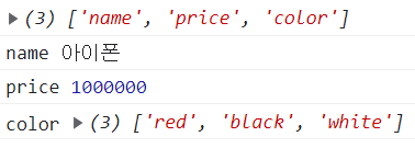 for-in문을 통해 key값을 가져와 속성에 대해 접근할 수 있습니다.