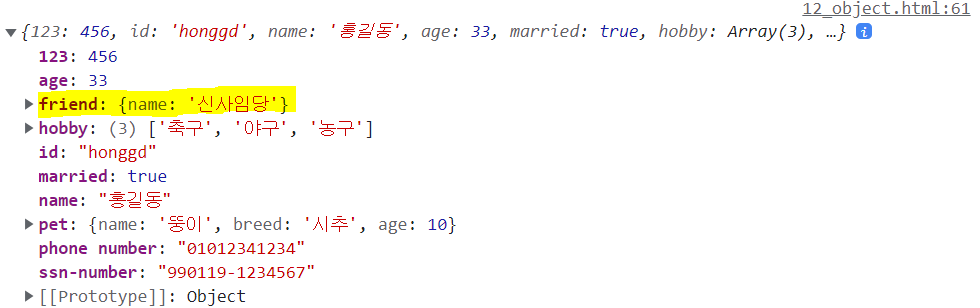 obj1.friend = {name : '신사임당'};