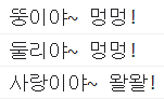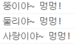 반복처리를 통해 00야~ 왈왈/멍멍을 출력해보겠습니다.