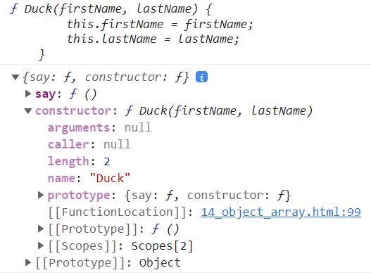 constructor 안에 prototype을 열어보면 Duck.prototype이 링크 되어있는 것을 확인할 수 있습니다.