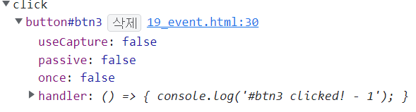 btn3.removeEventListener('click', foo2); // 삭제할 핸들러 명시!