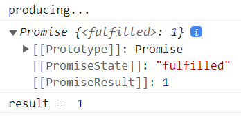 state는 'fulfilled'로 변경되었으며, result는 value인 num(1)이 출력되었습니다.