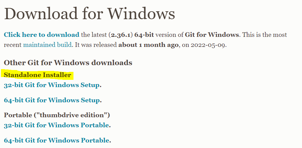 Download for Windows Click here to download the latest (2.36.1) 32-bit version of Git for Windows. This is the most recent maintained build. It was released about 1 month ago, on 2022-05-09. Other Git for Windows downloads Standalone Installer 32-bit Git f