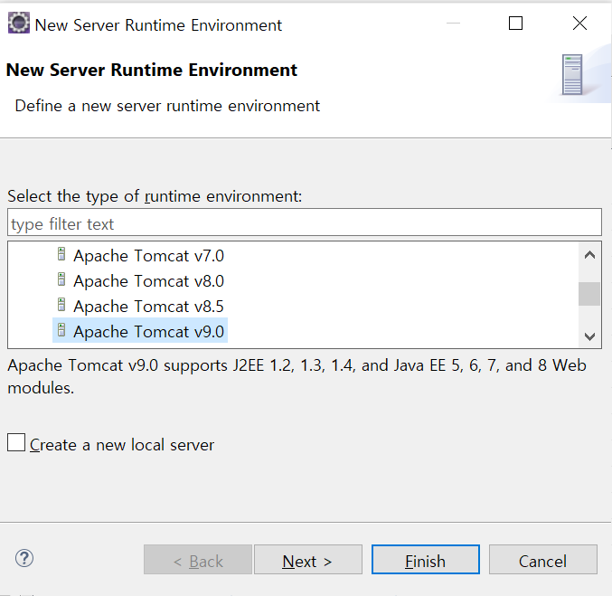 본인이 설치한 Tomcat의 버전을 선택한 후 Next!