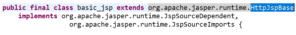 HttpJspBase는 HttpServlet을 상속하고 있는 것으로 보여집니다. 즉, basic_jsp는 servlet으로 변환이 된다는 것을 알 수 있습니다.