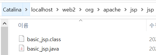 basic_jsp.java 파일로 변환이 되었고 complie된 .class 파일이 확인됩니다.