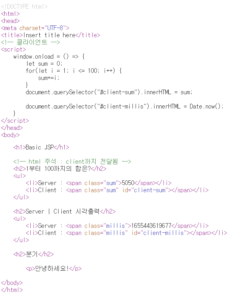 | JSP) JSP Basic - jsp 주석/html 주석, 서버/클라이언트 연산 처리 (0) | 2022.06.17 |