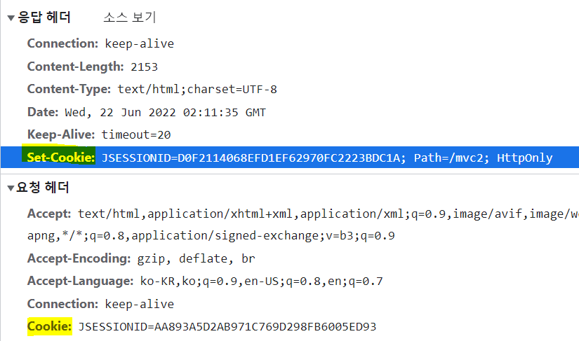 네트워크 탭의 mvc2 헤더