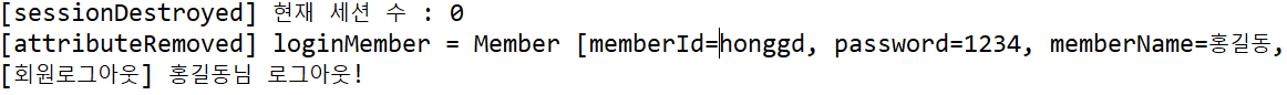 System.out.println("[회원로그아웃] " + logoutMember.getMemberName() + "님 로그아웃!");