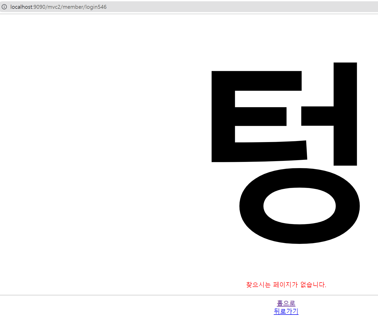 존재하지 않는 URL로 접근했을 때 tomcat이 생성한 에러페이지가 아닌 직접 생성한 에러페이지가 나오는 것을 확인할 수 있습니다.