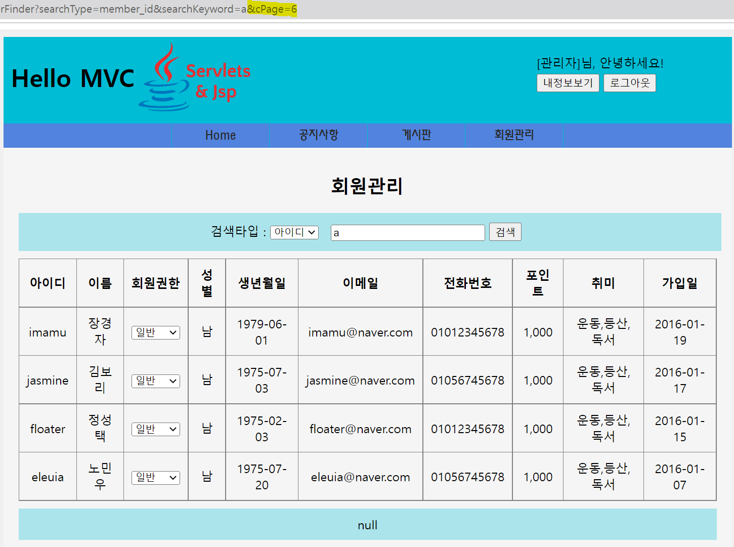 하지만 이렇게 uri를 변경해도 페이지 이동을 하면 위와 같이 검색이 이루어집니다.
