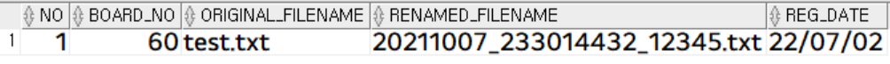 rename_filename varchar2(255) not null, -- 실제 저장된 파일명