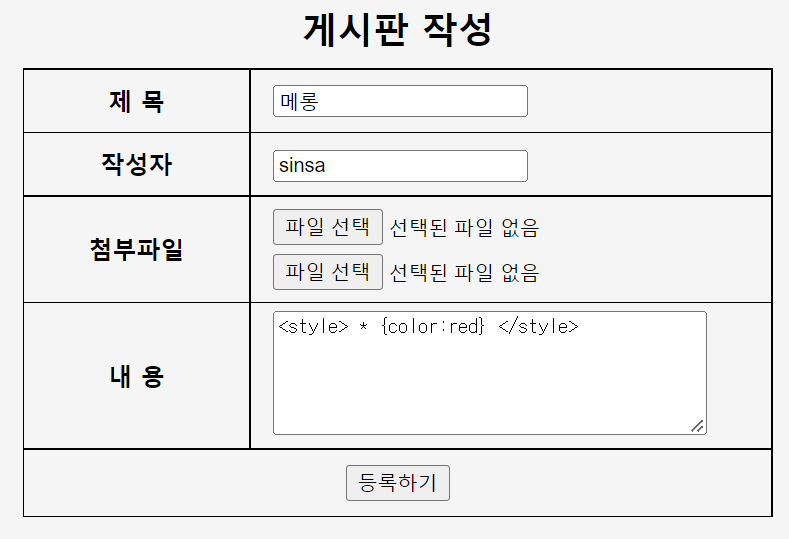 만일 사용자가 아래와 같은 내용을 작성하고 등록한다면,