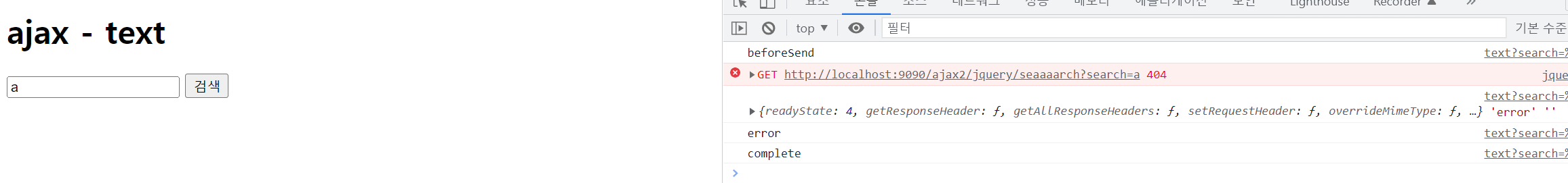* error - ajax통신에 실패했을 때 호출될 이벤트 핸들러