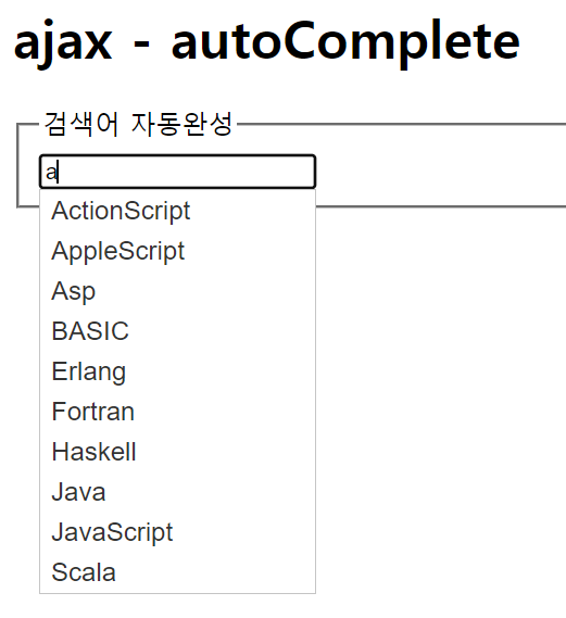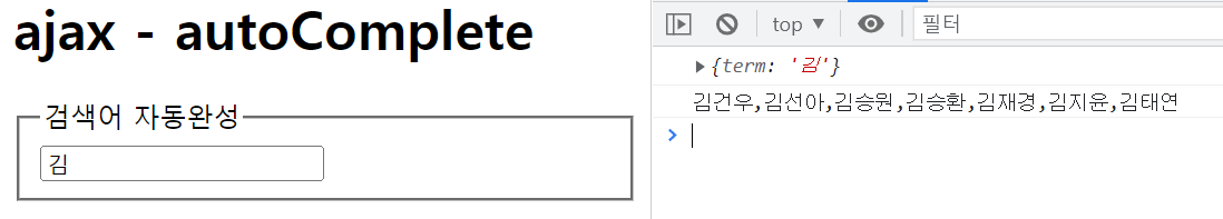 입력한 값을 포함하고 있는 단어들이 추려진 후 출력되는 것을 확인할 수 있습니다.