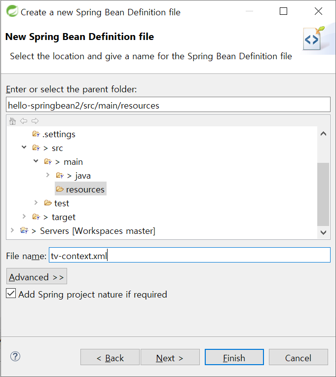 <bean id="samsungTv" class="com.ce.spring.tv.SamsungTv"></bean>