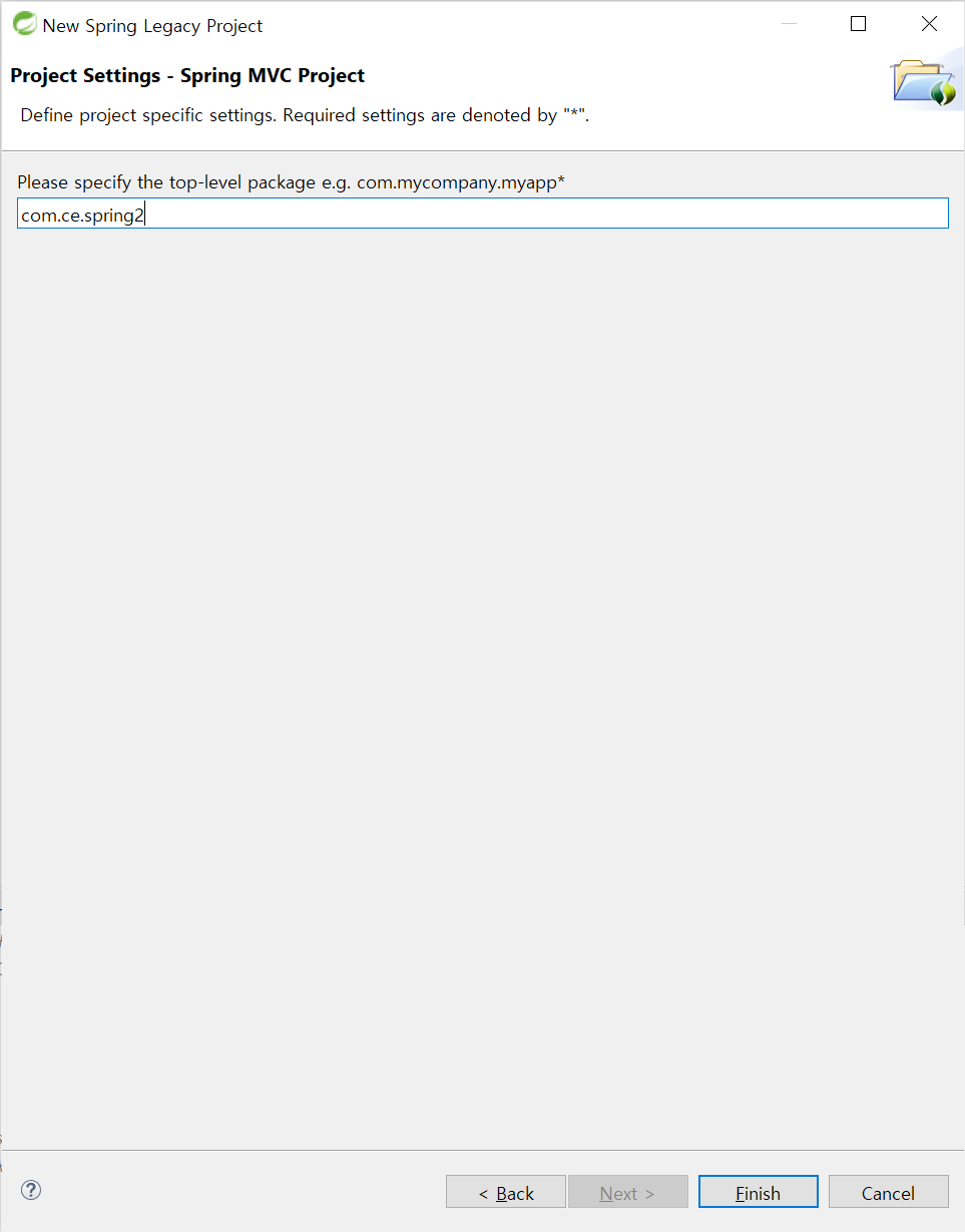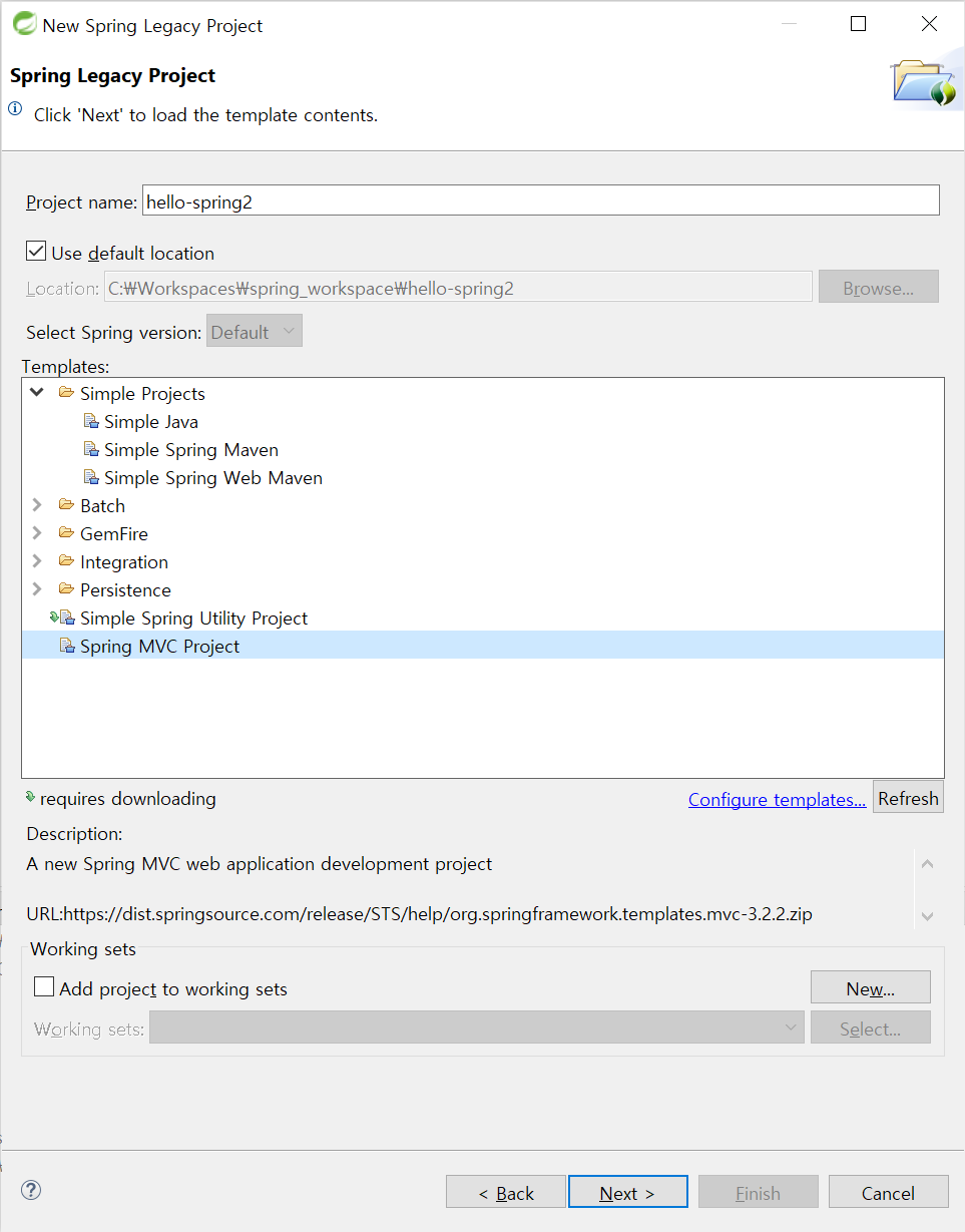 Spring Web MVC를 이용하기 위해 MVC Project Template 지정 후 Next!