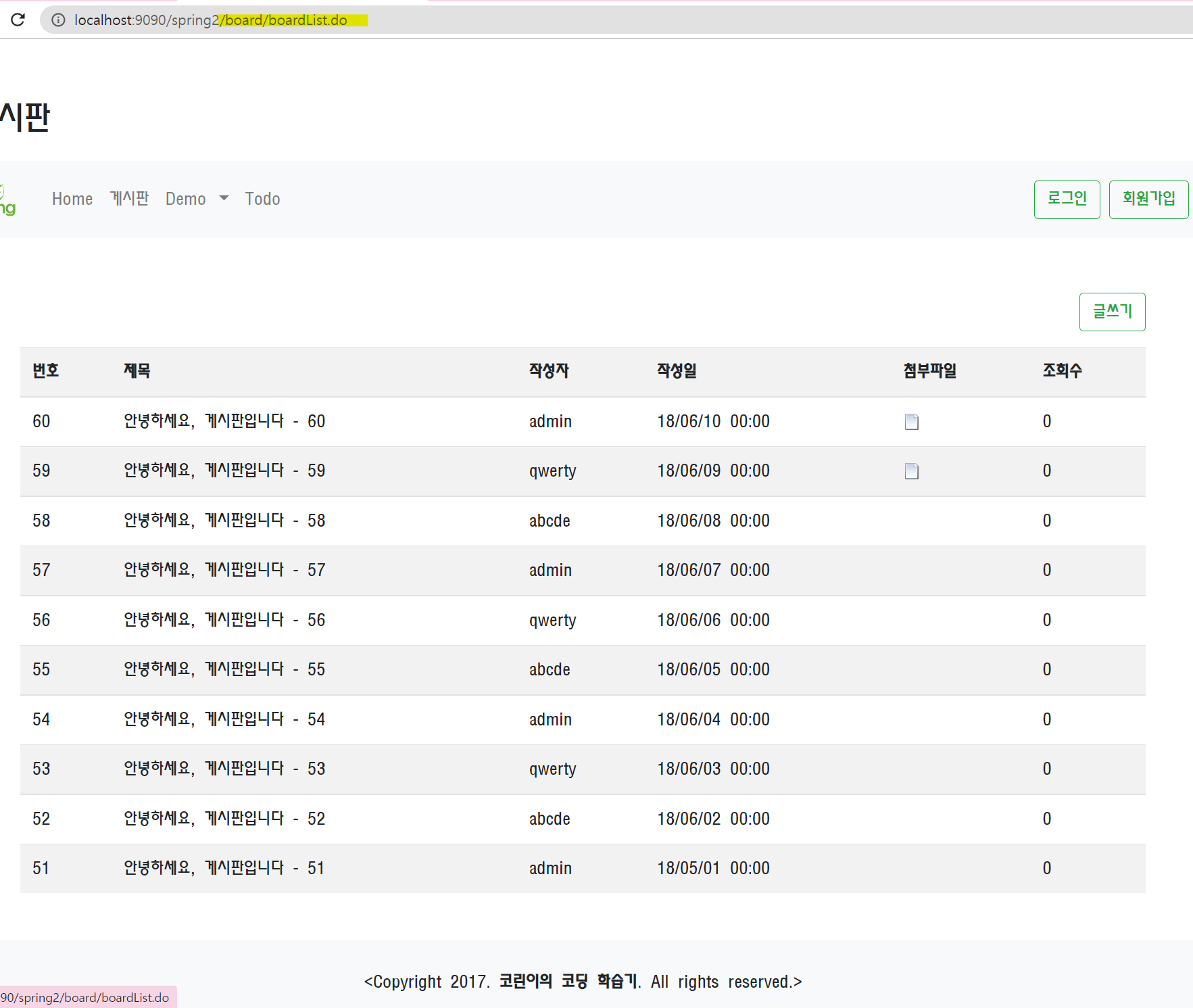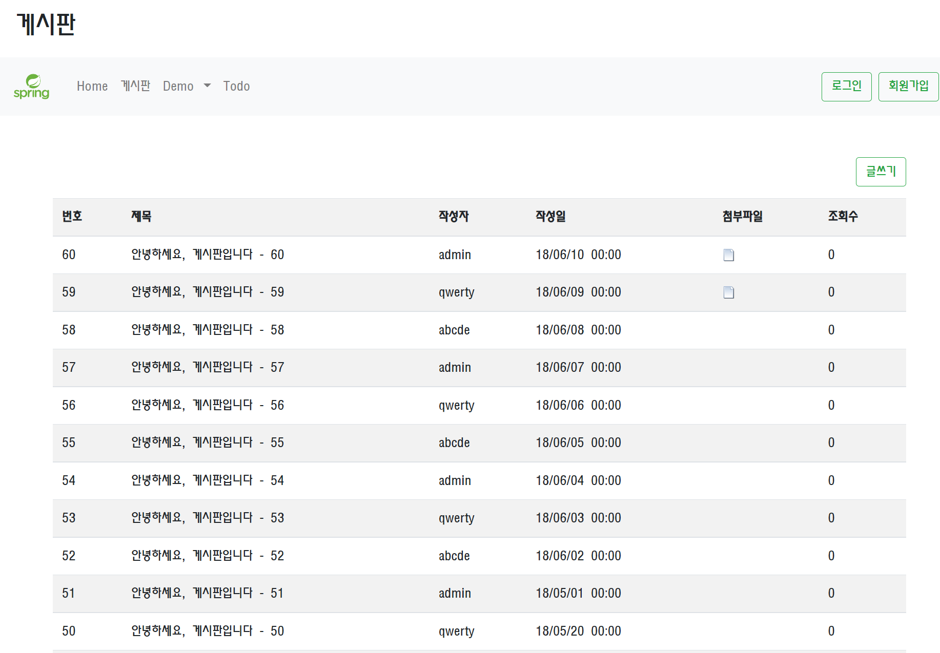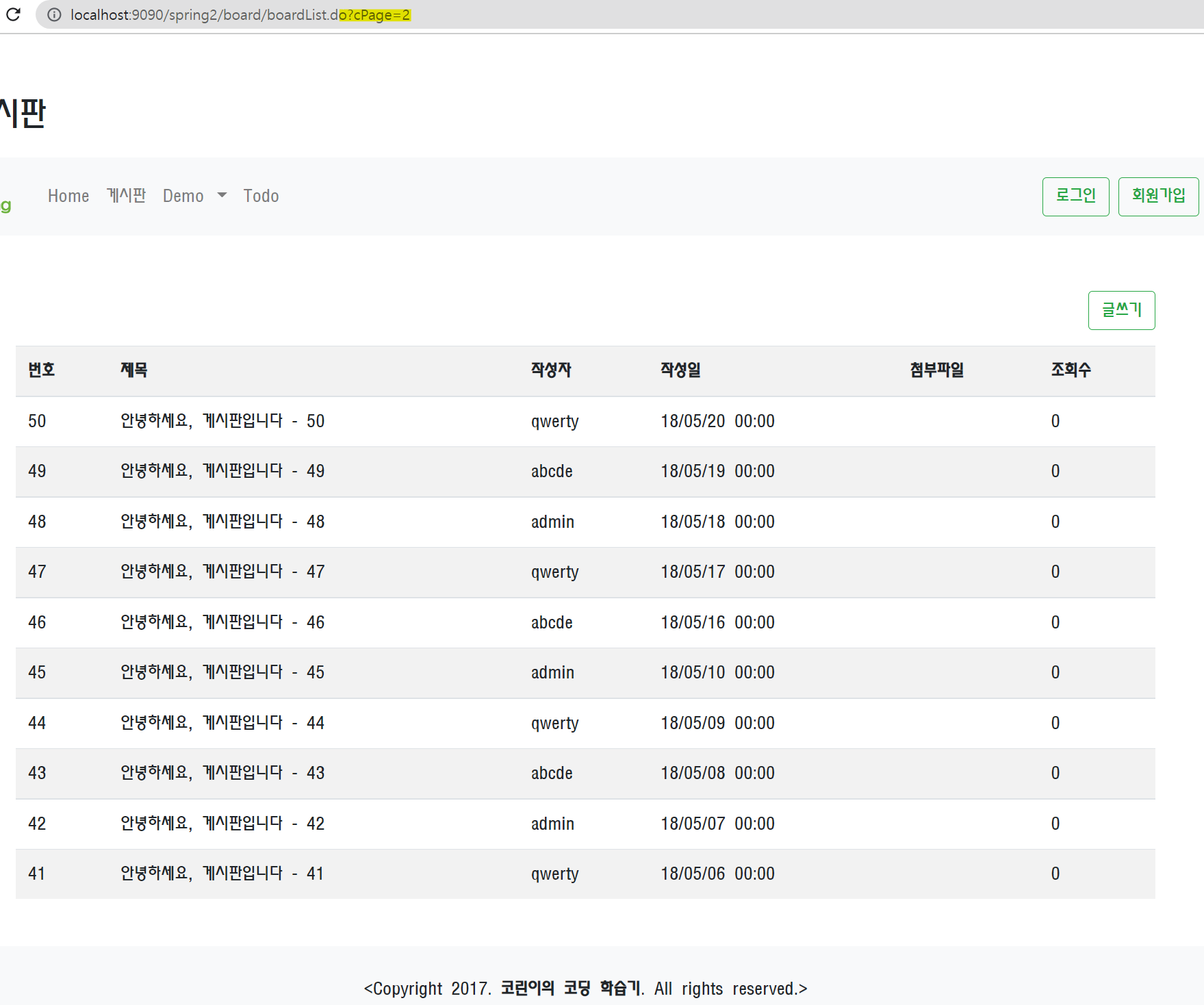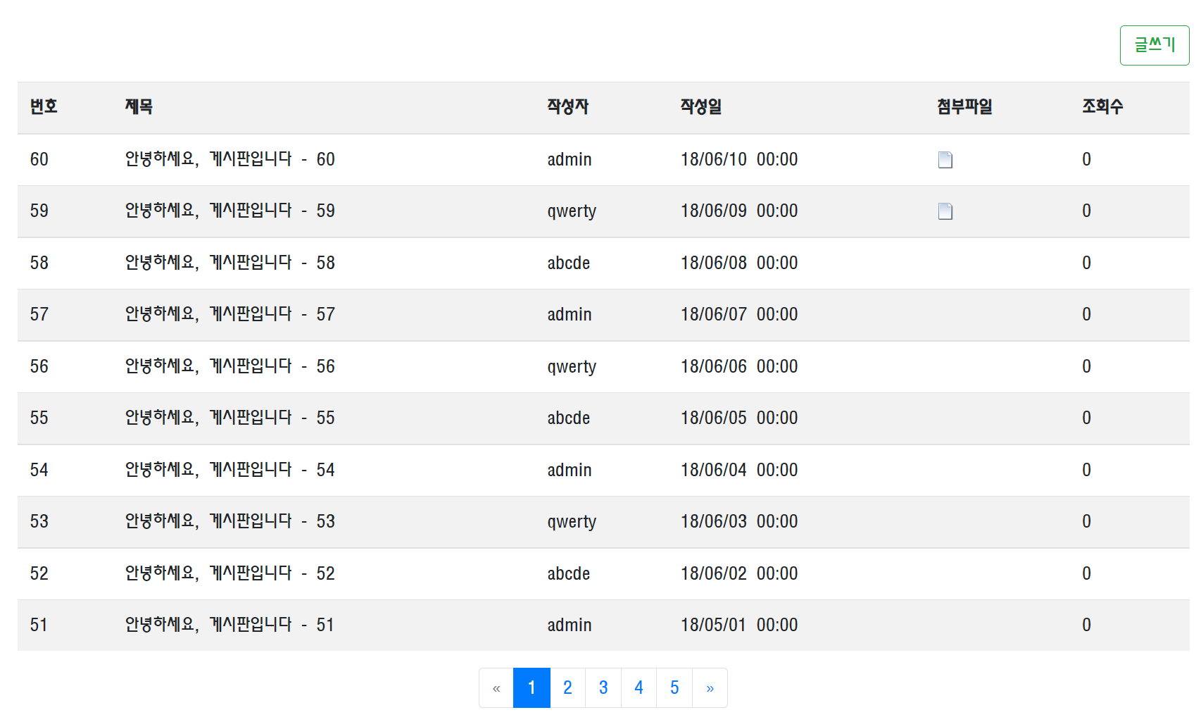 페이징 처리에 따라서 랜더링되는 게시글이 다른 것을 확인할 수 있습니다.