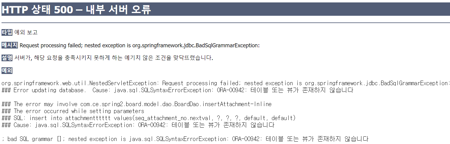 Attachment의 테이블명을 잘못 설정하고 게시글 등록 시