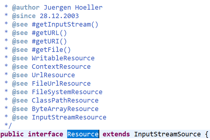 Resource : 다음 구현체들의 추상화레이어를 제공 (인터페이스)