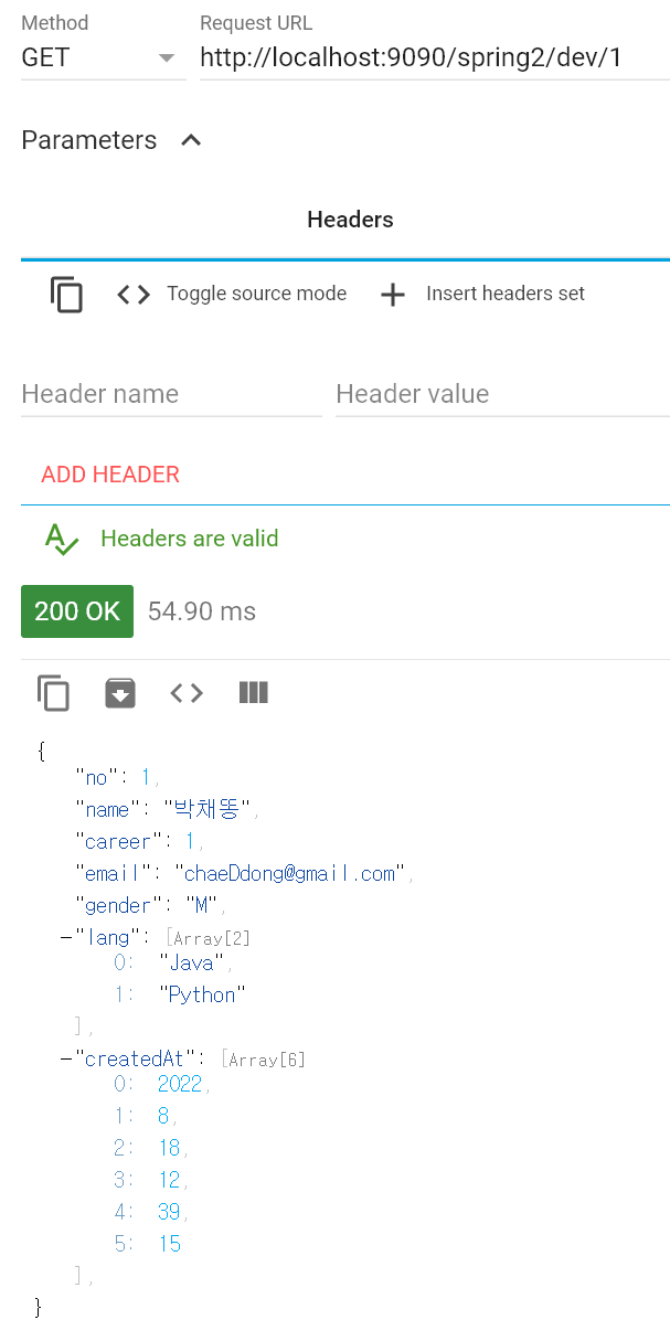 하지만, StatusCode가 정상처리를 의미하는 '200'이 리턴된 것을 확인할 수 있습니다.